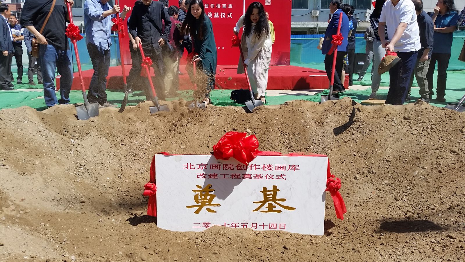 當天,北京畫院創(chuàng)作樓畫庫改建工程奠基儀式同時開啟,北京市委宣傳部主管領導,畫院院長王明明,畫院黨委書記雷波, 設計、 施工、 監(jiān)理單位的主要領導以及眾多老畫家,中青年畫家、藝術家等參加了奠基儀式。落成后的新樓將具備創(chuàng)作、收藏、教學、國際交流等多方位的實用空間,為北京畫院的多元化發(fā)展提供了更多可能。