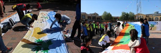 伴隨著培訓(xùn)師的開場(chǎng),大家逐漸熱絡(luò)起來(lái),各個(gè)小組的成立,使人油然產(chǎn)生一種集體、團(tuán)隊(duì)凝聚起來(lái)的感覺(jué)。在小游戲環(huán)節(jié)的歡聲笑語(yǔ)中,我們彼此更加親近,更加了解。隨后,各自的團(tuán)隊(duì)繪制自己的旗幟,我們口號(hào)統(tǒng)一、歌聲嘹亮,也更加深彼此間的了解,縮短了相互的距離。當(dāng)想著一個(gè)個(gè)從未嘗試過(guò)的挑戰(zhàn)項(xiàng)目時(shí),心中只有一個(gè)念頭就是“克服一切自身困難,絕不掉隊(duì)”。