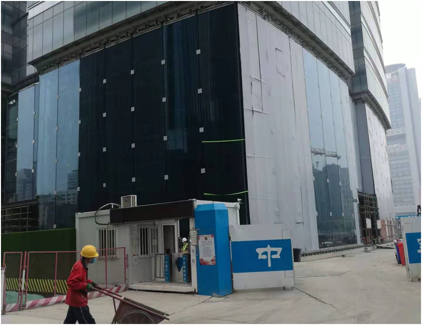 2020年6月26日,泰康大廈項目首層大堂超高全玻璃幕墻全部安裝完成。此舉標志著該項目幕墻工程進入收尾階段,目前項目精裝修、機電施工正在緊張有序推進,預計項目將在年底前整體竣工驗收。