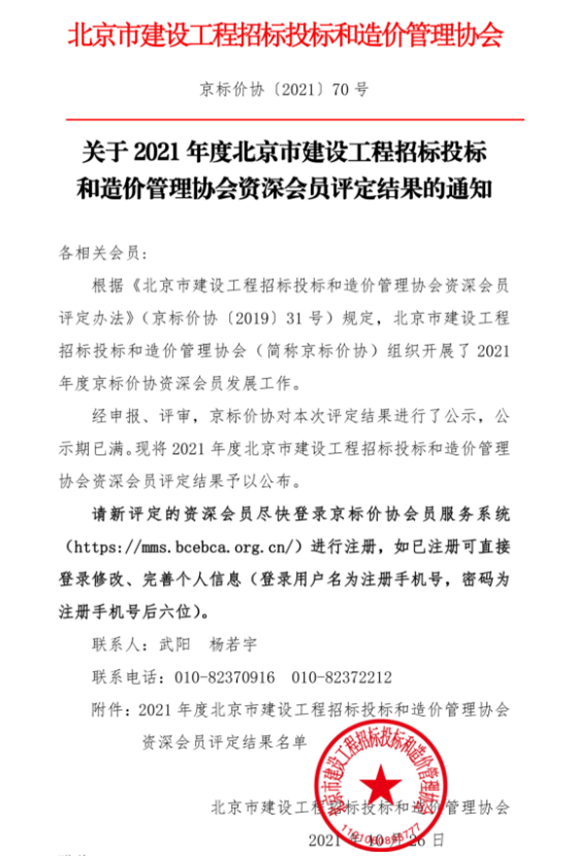 在2021年度北京市建設(shè)工程招標(biāo)投標(biāo)和造價管理協(xié)會資深會員評定活動中,本次活動全市共評選出121名 “資深會員”,其中有4位雙圓咨詢的造價工程師被評為“資深會員”,他們分別是咨詢部的蔣艷茹、慕建標(biāo)、鄧俊敏和郭玉霞(具體情況詳見附件一)。