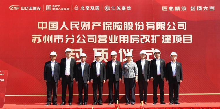 9時(shí)18分,高峰先生宣布,中國人民財(cái)產(chǎn)保險(xiǎn)股份有限公司蘇州市分公司營業(yè)用房改擴(kuò)建工程正式封頂。