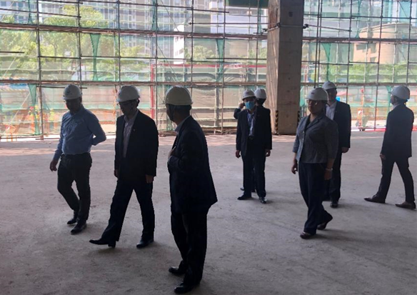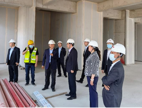 封頂儀式結(jié)束后,蘇州市分公司領(lǐng)導(dǎo)班子成員參觀了施工現(xiàn)場。領(lǐng)導(dǎo)們特別關(guān)心工程的質(zhì)量、安全,深切了解了頻發(fā)的新冠疫情對項(xiàng)目進(jìn)度的影響,同時(shí)對各參建單位施工、管理人員在疫情防控高壓下持續(xù)保持生產(chǎn)表示了由衷的贊嘆。
