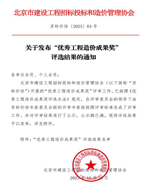 北京市建設(shè)工程招標(biāo)投標(biāo)和造價(jià)管理協(xié)會(huì)2023年10月30日發(fā)布了“優(yōu)秀工程造價(jià)成果獎(jiǎng)”評(píng)選結(jié)果,64家單位96項(xiàng)成果獲獎(jiǎng)。我公司申報(bào)的《北京市通州區(qū)體育局體育場(chǎng)升級(jí)改造項(xiàng)目工程量清單及最高投標(biāo)限價(jià)》和《榆樹莊村南區(qū)棚改項(xiàng)目周邊規(guī)劃道路及配套市政管線工程項(xiàng)目施工招標(biāo)代理咨詢服務(wù)》榮獲“優(yōu)秀工程造價(jià)成果獎(jiǎng)”。此次獲獎(jiǎng)是對(duì)我公司造價(jià)咨詢和招標(biāo)代理成果的充分肯定,更是對(duì)公司持續(xù)提升業(yè)務(wù)能力和服務(wù)水平的激勵(lì)。我公司將繼續(xù)遵循“科學(xué)管理,顧客滿意,持續(xù)改進(jìn),行業(yè)一流,——服務(wù)永無止境”的方針,奉獻(xiàn)更多優(yōu)秀的工程造價(jià)成果,為廣大客戶提供更加優(yōu)質(zhì)高效的咨詢服務(wù)。