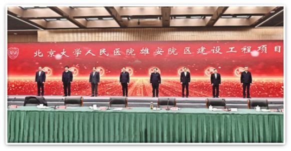 11月20日,北京大學(xué)人民醫(yī)院雄安院區(qū)建設(shè)工程項目正式開工建設(shè),河北雄安新區(qū)管委會和北京大學(xué)人民醫(yī)院聯(lián)合召開北京大學(xué)人民醫(yī)院雄安院區(qū)建設(shè)工程項目開工動員會。國家衛(wèi)生健康委黨組成員、副主任于學(xué)軍,北京大學(xué)校長、中國科學(xué)院院士龔旗煌,國家發(fā)展改革委社會發(fā)展司司長劉明,河北省委常委,雄安新區(qū)黨工委書記、管委會主任張國華,河北省政府黨組成員趙大春,中國通用技術(shù)集團總經(jīng)理、黨組副書記陸益民,北京大學(xué)人民醫(yī)院院長、中國工程院院士王俊出席開工動員會并致辭,雙圓公司副總經(jīng)理、雄安事業(yè)部總經(jīng)理參加了開工動員會。